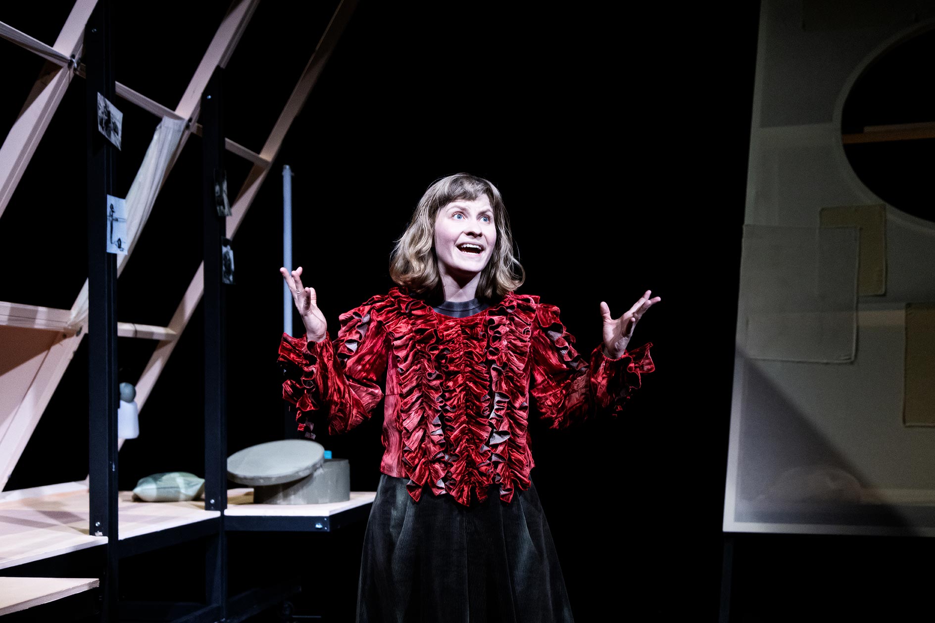 Emel Aydoğdu, Regisseurin und Autorin, setzt die Tagebucheinträge im Bühnenbild von Eva Lochner szenisch um. Der Fokus liegt dabei auf drei verschiedenen Erzählstrukturen, die durch eine Loopingstation, eine Live-Kamera und die direkte Ansprache ans Publikum definiert und von Maurizia Bachnick verkörpert werden.
